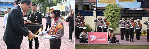 Kemudian acara pedang pora bagi personil yang pensiun yaitu AKBP (Purn) Tangap Manurung, AKP (Purn) Daryanto dan Aiptu (Purn) Samaun Siregar.(*/theo)