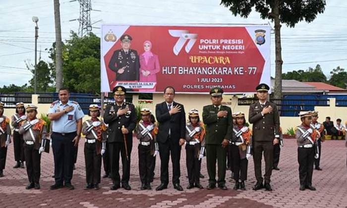 “Keamanan bukan hanya tangungjawab TNI-Polri tapi tanggungjawab semua elemen masyarakat. Mari kita semua saling menjaga keamanan. Kami dari Pemkab Humbahas mengucapkan selamat HUT Bhayangkara ke-77. Polri Presisi untuk Negeri” ucap Bupati Humbahas.