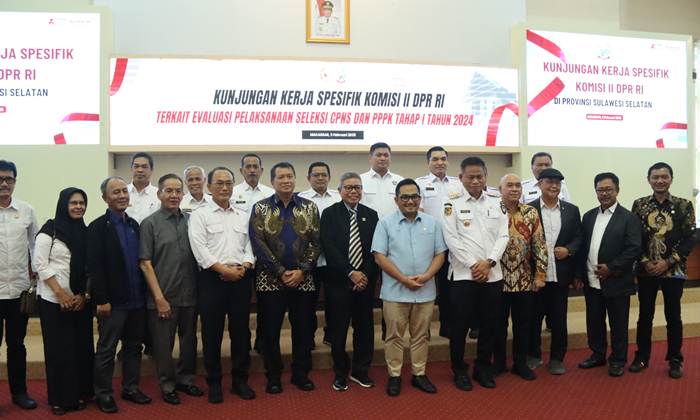 Kegiatan yang berlangsung di Ruang Rapat Pimpinan Gedung A Kantor Gubernur Sulawesi Selatan dihadiri Wakil Menteri Menpan RB, Ketua komisi II DPR RI bersama anggota, Para Walikota/Bupati se-Sulsel, para Kepala BKPSDM Kota/Kab Se-Sulsel dan Kepala OPD Sulsel, Rabu 5 Februari 2025.