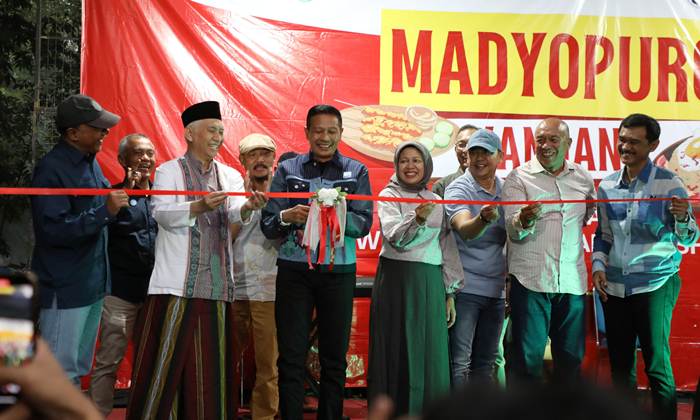 MALANG Wali Kota Malang Wahyu Hidayat, membuka iven wisata kuliner halal cashless Madyopuro Mangano yang digelar di area depan Terminal Madyopuro hingga Jl. Danau Jonge, Kelurahan Madyopuro Kecamatan Kedungkandang Kota Malang, baru-baru ini.