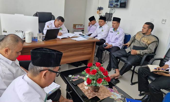 PASAMAN BARAT – Seiring makin dekatnya perjalanan ibadah haji ke Tanah Suci tahun 1446 /2025, jajaran Seksi PHU dan Kepala KUA rembuk bersama di ruang Kasi Penyelenggaraan Haji dan Umrah (PHU) Kantor Kementerian Agama Pasaman Barat, Simpang Empat.