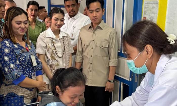 HUMBANG HASUNDUTAN – Wakil Presiden (Wapres), Gibran Rakabuming Raka, meninjau pelaksanaan Program Cek Kesehatan Gratis (CKG) di Puskesmas Sigompul, Desa Pargaulan, Kecamatan Lintong Nihuta, Kabupaten Humbang Hasundutan, Jumat (16/5/2025).