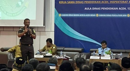 Banda Aceh – Kasi Penkum dan Humas Kejati Aceh Ali Rasab Lubis, S.H menjadi pemateri Sosialisasi tertib pengelolaan dana BOS