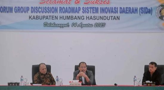 HUMBAHAS – Bupati Humbang Hasundutan Dosmar Banjarnahor, SE, membuka secara resmi Forum Group Discussion Penyusunan Roadmap Sistem Inovasi Daerah (SIDa)