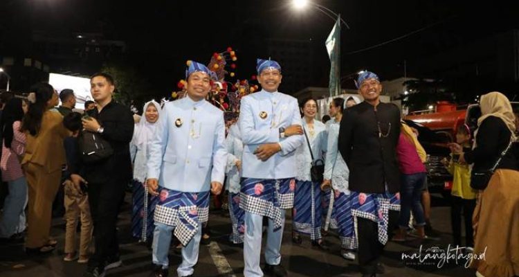 SURABAYA – Kota Malang menampilkan pertunjukan yang memukau dalam pawai budaya Munas VII Asosiasi Pemerintah Kota Seluruh Indonesia (APEKSI) di Surabaya,